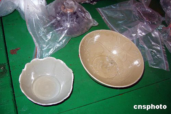 图为从“南海一号”最近探摸出的部分瓷器。中新社发 索有为 摄