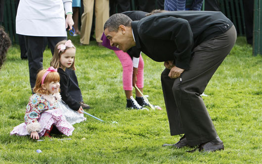 复活节滚彩蛋:2009年4月13日,美国总统奥巴马携家人在白宫南草坪主持白宫复活节滚彩蛋仪式。
