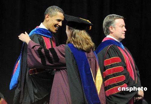 参加大学毕业典礼:当地时间2009年5月13日晚,奥巴马出席亚利桑那州立大学春季毕业典礼并发表主题演讲,但并未获得学校颁发的荣誉学位。