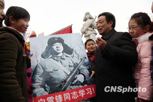 3月4日,河南省许昌市古槐街小学退休教师韦清林向同学们讲述雷锋事迹。当日,河南省许昌市古槐街小学组织同学们来到位于该市西湖公园内的雷锋塑像前,邀请退休老教师韦清林为同学们讲述雷锋事迹,老教师希望同学们要从小做起,从小事做起,将雷锋精神继续发扬下去、发扬广大。中新社发 牛书培 摄