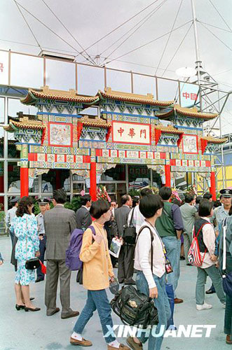 韩国大田世界博览会中国馆馆日活动于1993年9月28日在博览会会场隆重举行。博览会中国馆以其浓郁的民族风格为主线,巧妙地将悠久的中国传统文化与现代科技融为一体,设计独树一帜,展品丰富多彩。图为中国馆馆日当天,参观中国馆的游客络绎不绝。汤水富摄