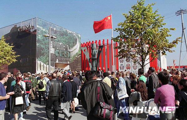 2000年9月23日,德国汉诺威世界博览会举办中国馆日活动,来自中国的文艺团体表演的功夫、杂技、民乐等中国传统文艺节目赢得观众的阵阵掌声。中国馆自6月份开馆以来参观总人数已超过250万,约占世博会总参观人数的四分之一,是世博会最受欢迎的展馆之一。图为观众踊跃参观中国馆。 郭勇摄