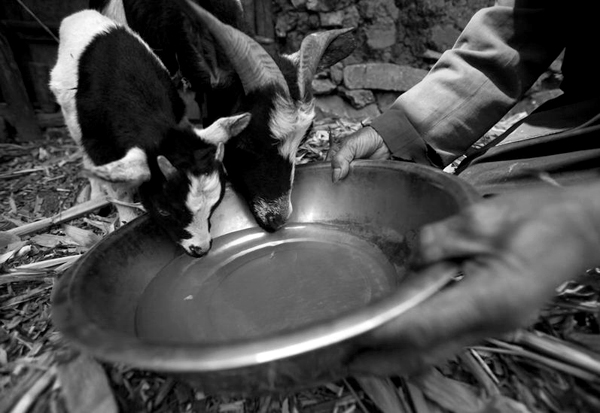 生活污水经过沉淀,张大爷用来喂牲畜。