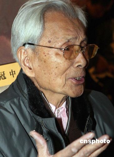 2009年2月26日,由中国美术馆、新加坡美术馆、上海美术馆联合主办的“耕耘与奉献——吴冠中捐赠作品展”在北京中国美术馆开幕。图为90岁高龄吴冠中在捐赠作品展上回答记者问。中新社发 钱兴强 摄