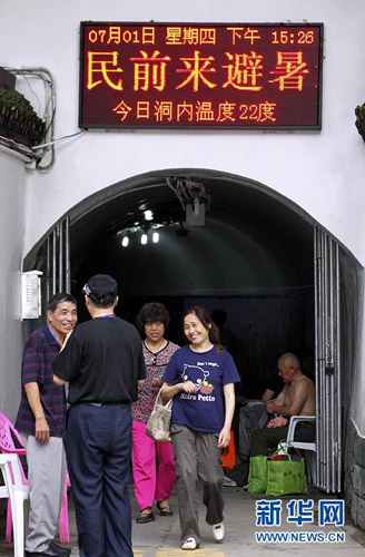 7月1日,市民到杭州吴山游艺场防空洞内避暑纳凉。当日,杭州正式免费开放9处防空洞,供市民纳凉避暑。这也是杭州连续第八年在高温时节采取“避暑纳凉,让洞于民”的措施。吴煌 摄