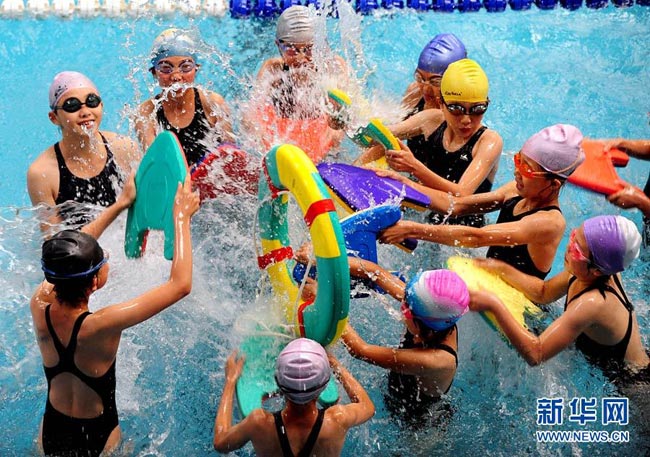 6月23日,沈阳市一些孩子在泳池内嬉水享受清凉。连日来,辽宁沈阳遭遇高温天气,许多市民来到游泳馆消夏降温。张文魁 摄