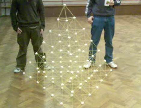 4、意大利面与药属葵塔 童子军完全用意大利面与药属葵打造了这个巴克明斯特·富勒所创作的四面体复制品,用一个躲避球马上就能摧毁它。