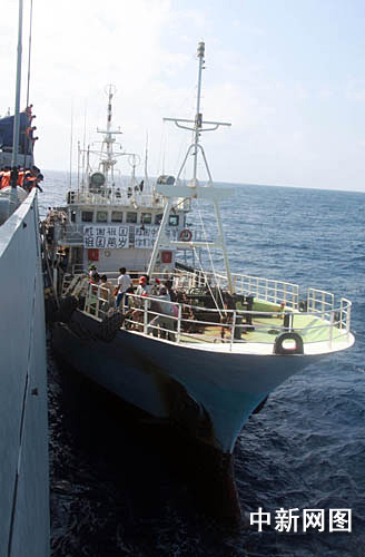 当地时间二○○九年二月十一日上午十时许(北京时间下午十五时许),获释的中国渔船“天裕八号”在中国海军护航编队“海口”号导弹驱逐舰的伴随护卫下,顺利抵达安全海域。