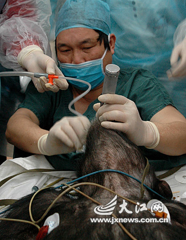 4月15日晚上6点48分,南昌大学第一附属医院生殖科专家与南昌市动物园举行了联合人工繁殖野生黑猩猩手术,经过近1小时的手术,医务人员对南昌市动物园年龄在30岁的非洲野生目猩猩成功地进行人工授精手术。据医务人员现场介绍,此次手术是已经取得了巨大成功,这也是江西首次为野生黑猩猩做此类授精手术,至于黑猩猩是否最终怀孕成功,还得等20多天之后才能揭晓答案。
