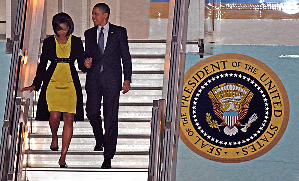 3月31日,奥巴马夫妇乘“空军一号”抵达伦敦参加20国首脑峰会。