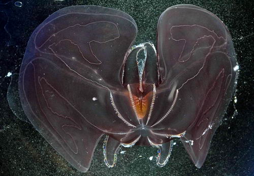 科学家发现这种长约15厘米的栉水母。它与海蜇的近亲,生活在情况多变的水面附近。与它的近亲不通的是它那黑色的外形,之前在该物种的研究中从未曾发现。