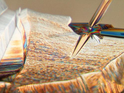 这幅作品利用光学显微镜,展现了晶体的成长过程。该物质由硫酸镁、泻利盐和六水写盐晶体组成。
