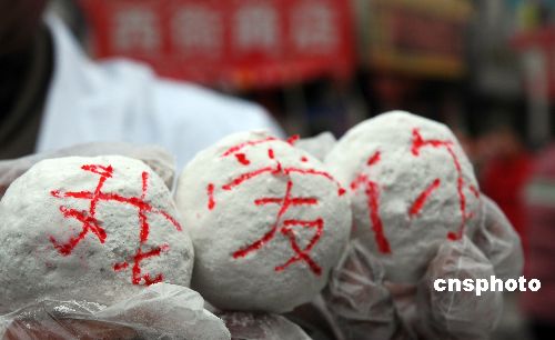 2月23日,一种写着“我爱你”的“情侣元宵”引人注目。元宵节临近,为抢占商机,增加销售量,河南汤阴的元宵生产厂商和经销者们使出各种招式开展促销活动。中新社发 常中正 摄