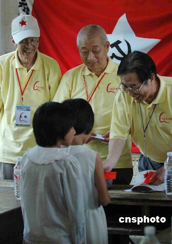 二十多位开国元勋子女7月20日晚在红军当年长征出发地之一的福建省三明市宁化县向淮土中心小学捐助建设资金20万元人民币。该活动总指挥、罗荣桓元帅之子罗东进将军,在宁化县举行的“开国元勋子女情系长征路联欢晚会”上,代表中国人民解放军96167部队现场捐款并讲话,用红军长征精神鼓励学生学习奋进。中新社发 田地 摄