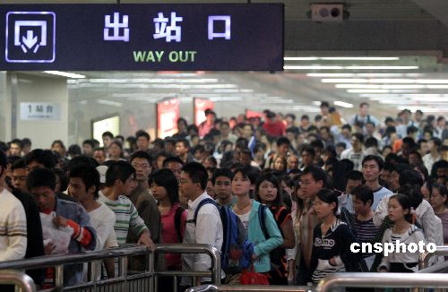 10月5日,南京火车站迎来国庆长假后的第一波返程高峰。中新社发 孙忠南 摄