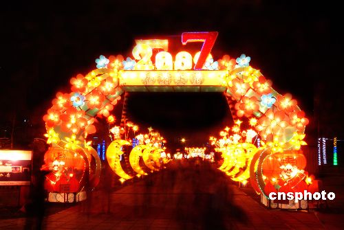 2月15日晚,2007年海口“万春会”开幕式暨“家和万事兴”大型灯展亮灯启动仪式的彩排在市万绿园进行。万绿园内彩灯闪烁,银花火树,夜色被流光溢彩的彩灯点亮,众多市民和游客来到现场,提前感受这一激动人心的时刻。中新社发 蒋聚荣 摄