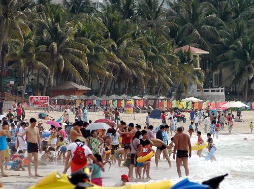 2月16日,在三亚景区游玩的游客。离新春佳节还有2天,三亚景区景点已迎来大量游客。国内外游客蜂拥而至在三亚休闲度假,尽享椰风海韵。中新社发 黄炬 摄
