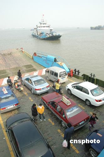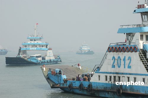 2月22日,长江江苏镇江段的镇扬汽渡码头十分繁忙。当日是农历大年初五,民工流、返程流、旅游流已集中到来,使镇扬汽渡迎来春运高峰,日驳车辆达3000多辆,达到节前的日驳载高峰量。中新社发 陈岗 摄