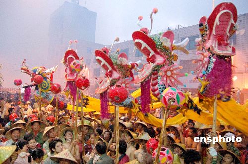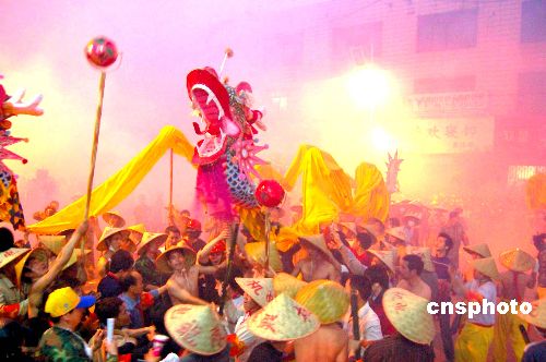 二月二十八日晚,享有“中华一绝”美誉的广西宾阳炮龙节激情上演,一百零一条炮龙狂舞古老的宾州大地,演绎了宾阳历史上规模最大的一次炮龙节,十万多名各地游客和宾阳县各族人民同城欢庆,一起见证这个名声日渐远扬传统节日的精彩和它独特的文化内涵。中新社发 黎明 摄
