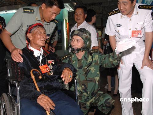 8月2日晚,参加全军英雄模范代表大会的代表集体来到中国人民革命军事博物馆,参观了“我们的队伍向太阳——新中国成立以来国防和军队建设成就展览”。中新社发 吴苏琳 摄