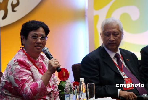 9月2日,第四届世界华文传媒论坛在四川成都开幕,《欧洲时报》社长杨咏橘(左)在开幕式后的举行的“媒体高端论坛”上发言称,世界华文媒体要加强团结合作才能做大做强,向更广大地区和人民介绍中国。中新社发 郭晋嘉 摄