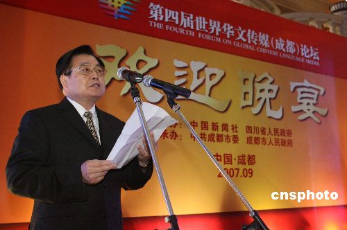 9月2日,第四届世界华文传媒论坛在四川成都开幕,四川省省长蒋巨峰在欢迎晚宴上致辞。中新社发 张勤 摄