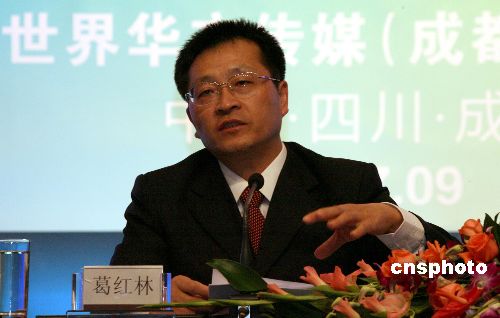 9月2日,在四川成都举办的第四届世界华文传媒论坛上,成都市委副书记、市长葛红林在“世界华文传媒聚焦四川·成都”记者招待会上回答记者的提问。中新社发 张勤 摄