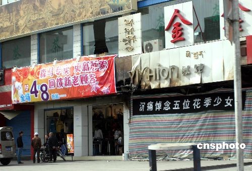 拉萨在平息3.14打砸抢烧犯罪事件后半月,正常生产、生活秩序正在全面恢复。4月1日,拉萨北京中路在3.14打砸抢烧犯罪事件中导致5名女服务员被烧死的“以纯服装专卖店”隔壁商家以让利方式重凝人气。中新社发 柳俊武 摄