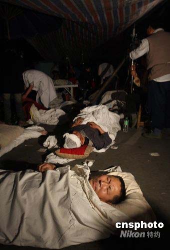 图:四川地震 受伤灾民接受救治