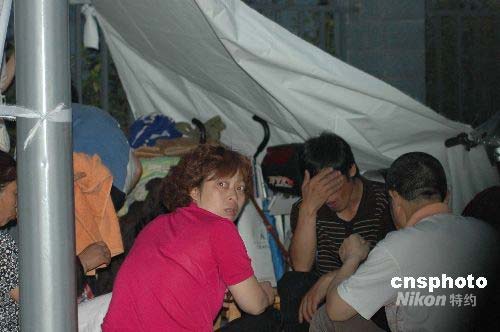 图:四川地震 民众路边搭建临时帐篷
