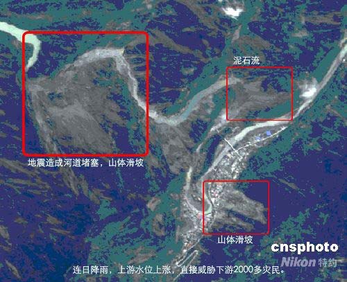 图:高分辨率卫星遥感影像监测汶川地震