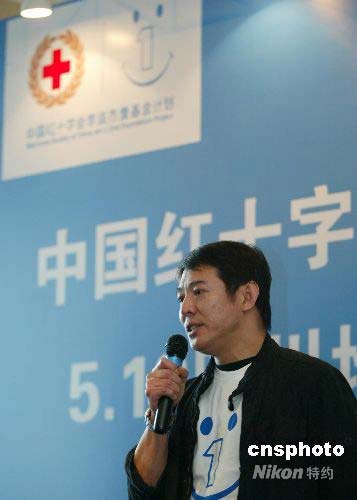 5月15日,中国红十字会李连杰壹基金举行“5.12四川地震救助情况通报会”,李连杰本人亲自出席。该基金在地震发生后三天的时间里筹集善款人民币2405万元。5月17日,李连杰将与第一批救灾物资一同飞往成都,将物资送到当地红十字会,下发给灾区。中新社发 富田 摄