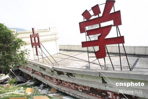 图:地震中倒塌的汶川中学