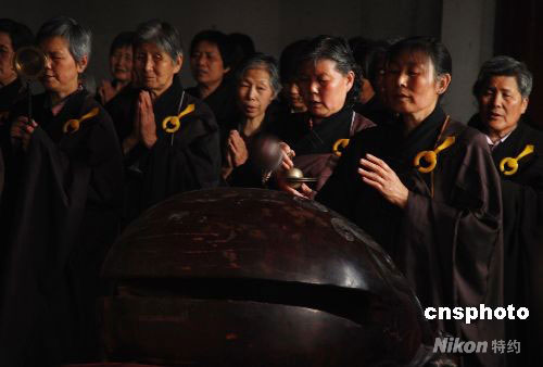 5月15日,江苏无锡南禅寺举行赈灾祈福吉祥法会。地震发生后,中国国家宗教局十三日立即向受灾地区捐款,同时向在北京的全国性宗教团体等发出通知,号召他们紧急开展向地震灾区捐款活动。中新社发 杨慧峰 摄