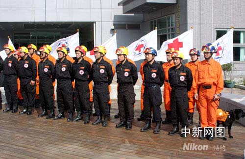 图:戎装即发的台湾红十字组织搜救队