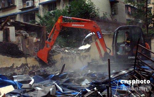 2008年5月15日,来自成都市企业的志愿抗震救灾队伍携带大型机械车辆开到都江堰市区,帮助展开危楼居民区的排险、救灾、防疫工作。汶川7.8级地震,给都江堰市带来巨大破坏,目前危楼居民疏散、安置工作已展开,取得一定成果。中新社发 邹宪 摄
