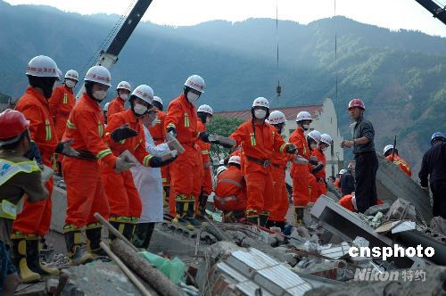 图:美籍华人抢险专家投入北川中学搜救