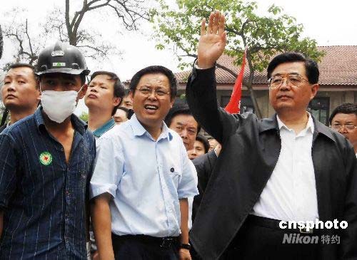 图:胡锦涛抵达地震重灾区北川查看灾情