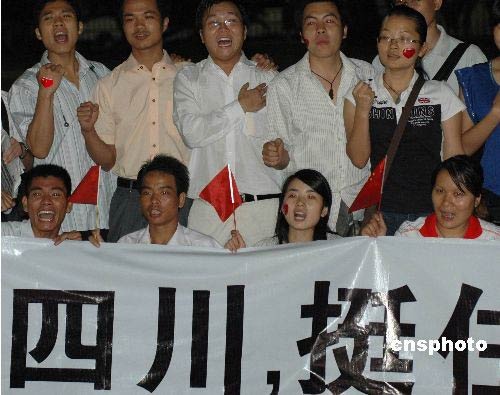图:中国"八零后"为四川灾区群众加油打气