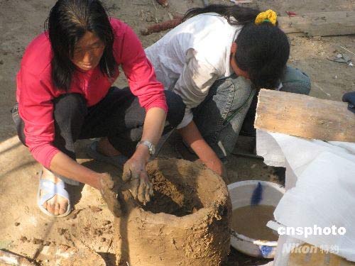 近日,甘肃省陇南市武都区桔柑乡村民制作简易炉子,自发进行灾后重建。汶川大地震后,陇南市多数地区受到破坏,房屋损毁严重。中新社发 侯志雄 摄