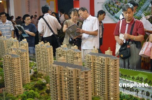 2008年10月1日至4日,上海举行“2008房地产秋季展示会”十一假日楼市。今年以来,房地产市场持续低迷,一向有上海楼市“风向标”之称的秋季房展,成为房企“金九银十”期间必须打好的最后一仗。不过,市场观望气氛仍然浓厚,“看多买少”的状况并未改变,业内认为上海楼市回暖为时尚早。从整体看,上海房价已通过房展会发出了明显的普降信号。中新社发 海牛 摄