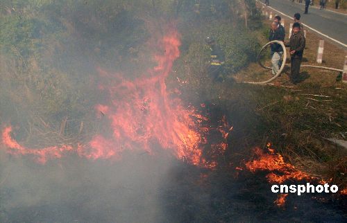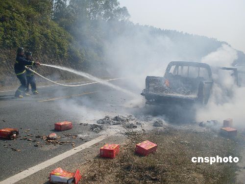 1月9日12点30分左右,广西钦州市境内一辆卡车突然起火,随后引燃附近近千亩甘蔗林。钦州消防部门迅速赶到现场灭火,2个小时后大火被扑灭,事故无人员伤亡。中新社发 刘富强 摄