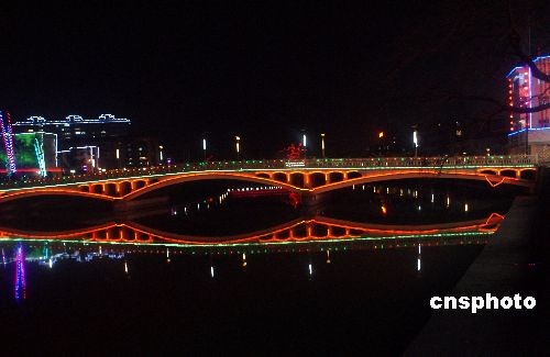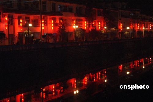 元宵节临近,2月5日,陕西宁强街头点亮元宵灯饰。中新社发 黎徳华 摄