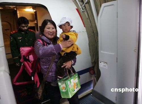 2月22日,顿珠仓决带着一岁多的女儿乘飞机返回拉萨过藏历新年。中新社发 刘震 摄