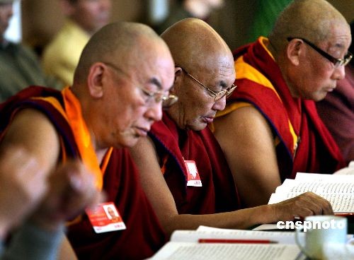 3月5日,在北京参加“两会”的宗教界全国政协委员进行小组讨论。很多委员都谈到,宗教要为国家稳定、建设和谐社会发挥作用。中新社发 宋吉河 摄
