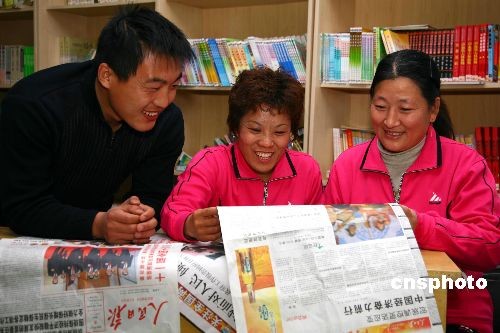 3月7日,北京市怀柔区雁栖镇陈各庄村村民正在村中“益民书屋”阅读“全国两会”专题报道内容。全国“两会”召开以来,京郊农民十分关注特别是有关“三农”议题,党中央关于“三农”的有关新政策,极大的鼓舞了京郊农民艰苦创业的勇气,坚定了农民勤劳致富奔小康的信心。中新社发 卜向东 摄