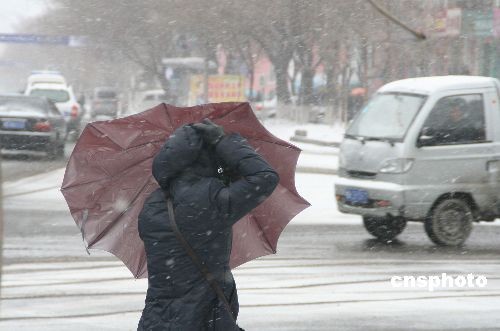 3月17日,新疆阿勒泰地区普降小到中雪,伴有3-5级的西北风,气温下降8度左右,部分地区还出现了雨夹雪天气。中新社发 唐晓波 摄