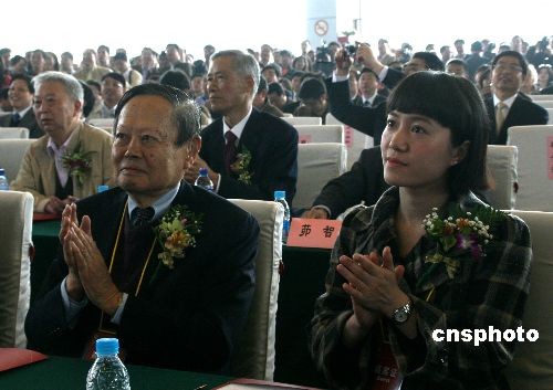 4月18日上午,扬州市科技创新成果展暨洽谈会在扬州国展中心举行。诺贝尔物理学奖得主杨振宁夫妇应邀参加。中新社发 崔佳明 摄
