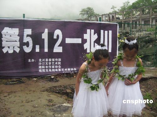 5月8日,“5·12”汶川大地震周年前夕,由沙汀文学艺术院、绵阳市作协等主办的“诗祭5·12——北川”在北川中学旧址举行,数10位来自四川、山东、陕西以及绵阳、北川的诗人,以特有的方式向大地震遇难同胞表达哀思。中新社发 肖青 摄