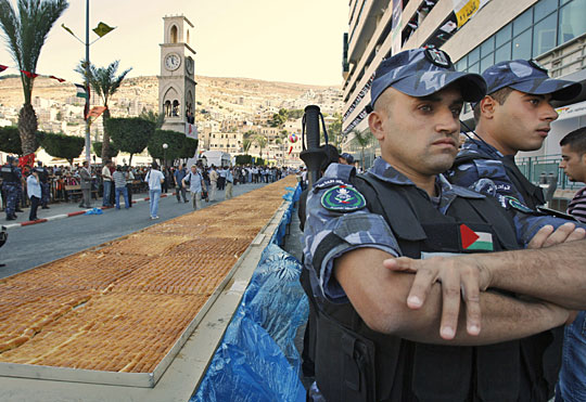 7月18日,在约旦河西岸城市纳布卢斯的糕点师用1700多公斤材料制成了约74米长的阿拉伯甜点,希望以此打破吉尼斯世界纪录。